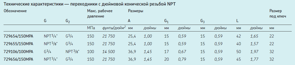 729656/150MPA Переходник с дюймовой конической резьбой NPT (NPT3/4 - G1/4, 150 МПа)