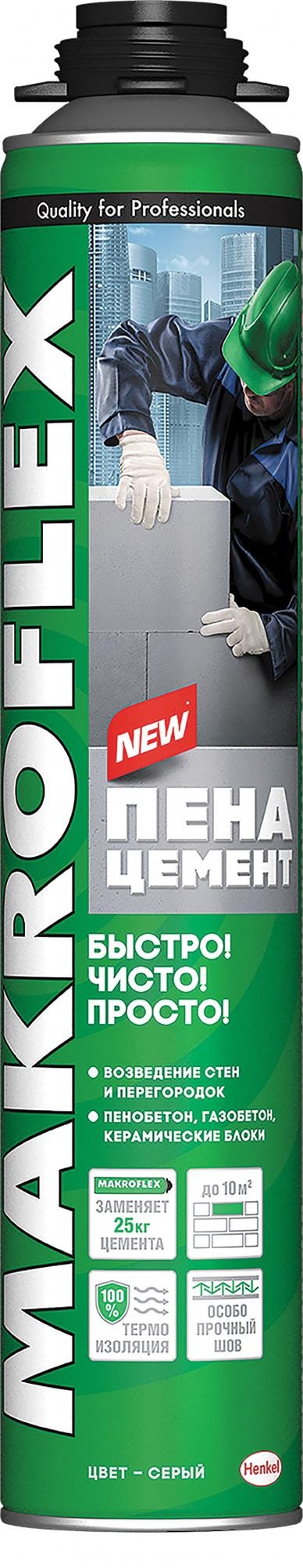 MAKROFLEX Пена-цемент – это полиуретановый состав, предназначенный для быстрого возведения стен-перегородок из строительных блоков для повышения производительности труда.