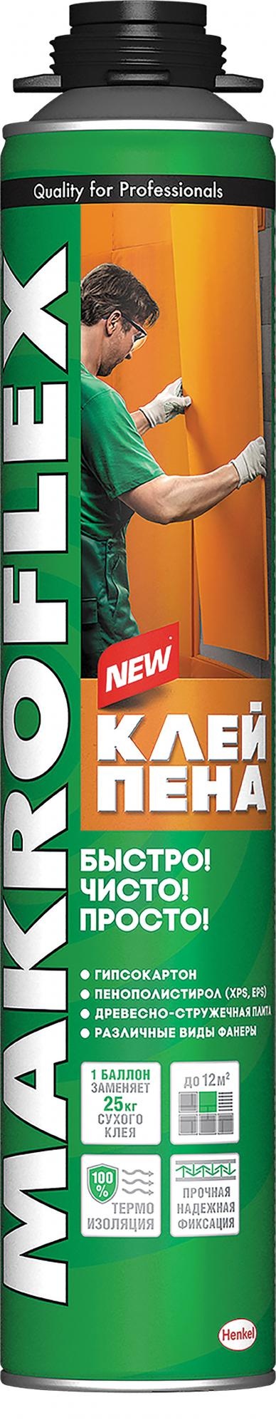 Макрофлекс Клей-пена Строительная профессиональная готовая к употреблению сверхэффективная полиуретановая клей-пена для фиксации панелей. Один баллон заменяет 25 кг строительного клея.