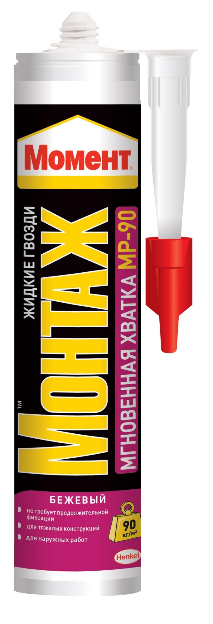 Монтажный клей Момент Монтаж Мгновенная Хватка МР-90 – Является профессиональным монтажным клеем и используется в строительстве и ремонте, при повышенных требованиях к качеству работ.