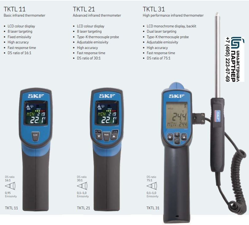 Обновлённый Инфракрасный термометрSKF TKTL 21 для контактных и бесконтактных измерений обеспечивает различные способы измерения температуры.