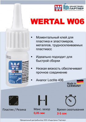 WERTAL W06, 3 г Клей цианоакрилатный низкой вязкости (Аналог LOCTITE 406)