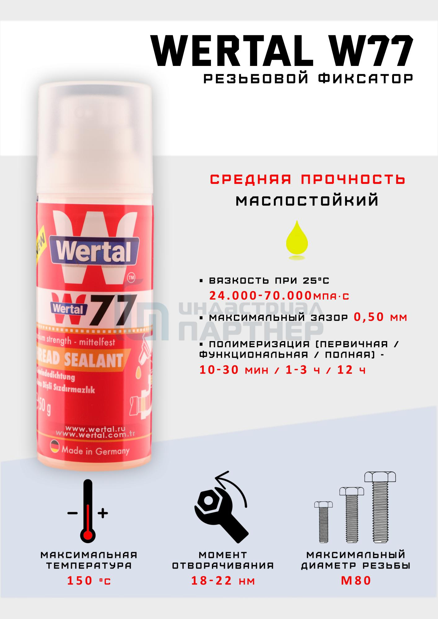 WERTAL W77, 50 мл Резьбовой герметик средней прочности (Аналог LOCTITE 577)