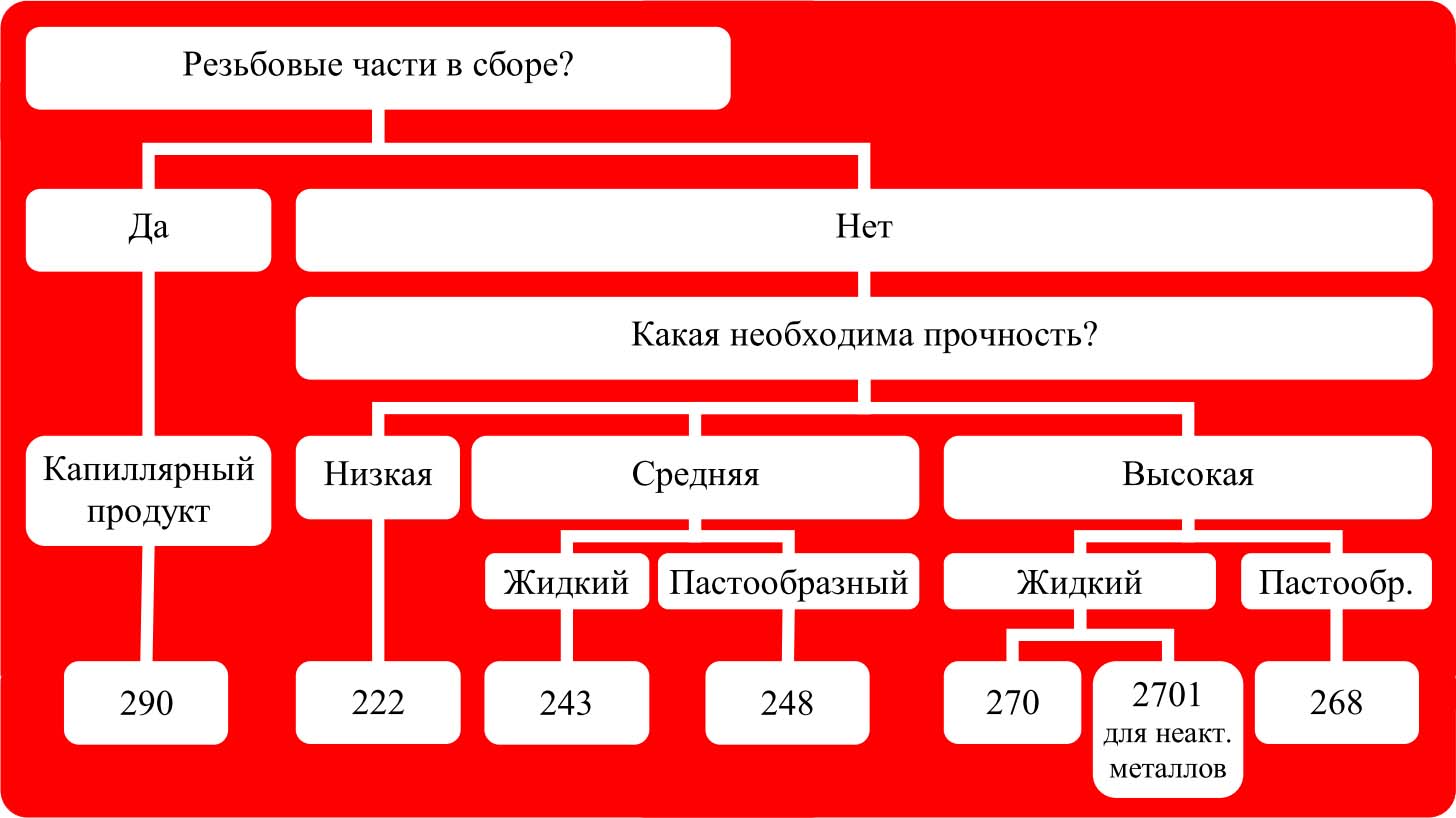 Вспомогательные таблицы выбора продуктов Loctite (Локтайт) - резьбовые фиксаторы, резьбовые герметики, фланцевые герметики, полиуретановые и MS-полиуретановые составы, моментальные цианокрилатные клеи, эпоксиды, вал-втулочные клеи.